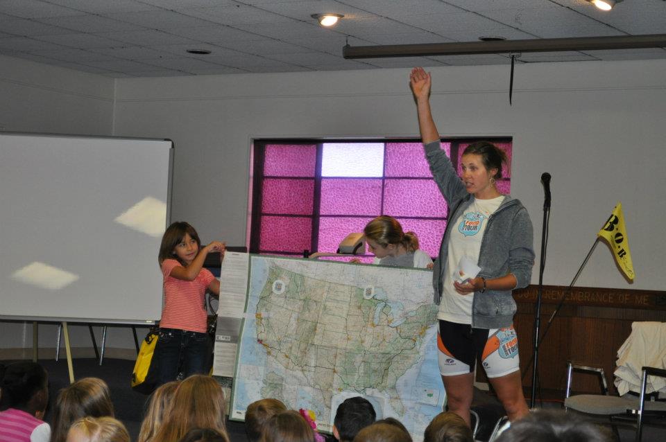 I was excited to speak with classes who already had a concept of what bicycle touring entails and these students did not disappoint. The young audiences were full of thoughtful questions and were very engaged in my trip and curious about my mission. The class presentations were great but the best part of the day came after the bell had run. Kids streamed down the hall decked out in bike shorts and jerseys to meet up for a ride to the local Three Sisters Organic Farm.