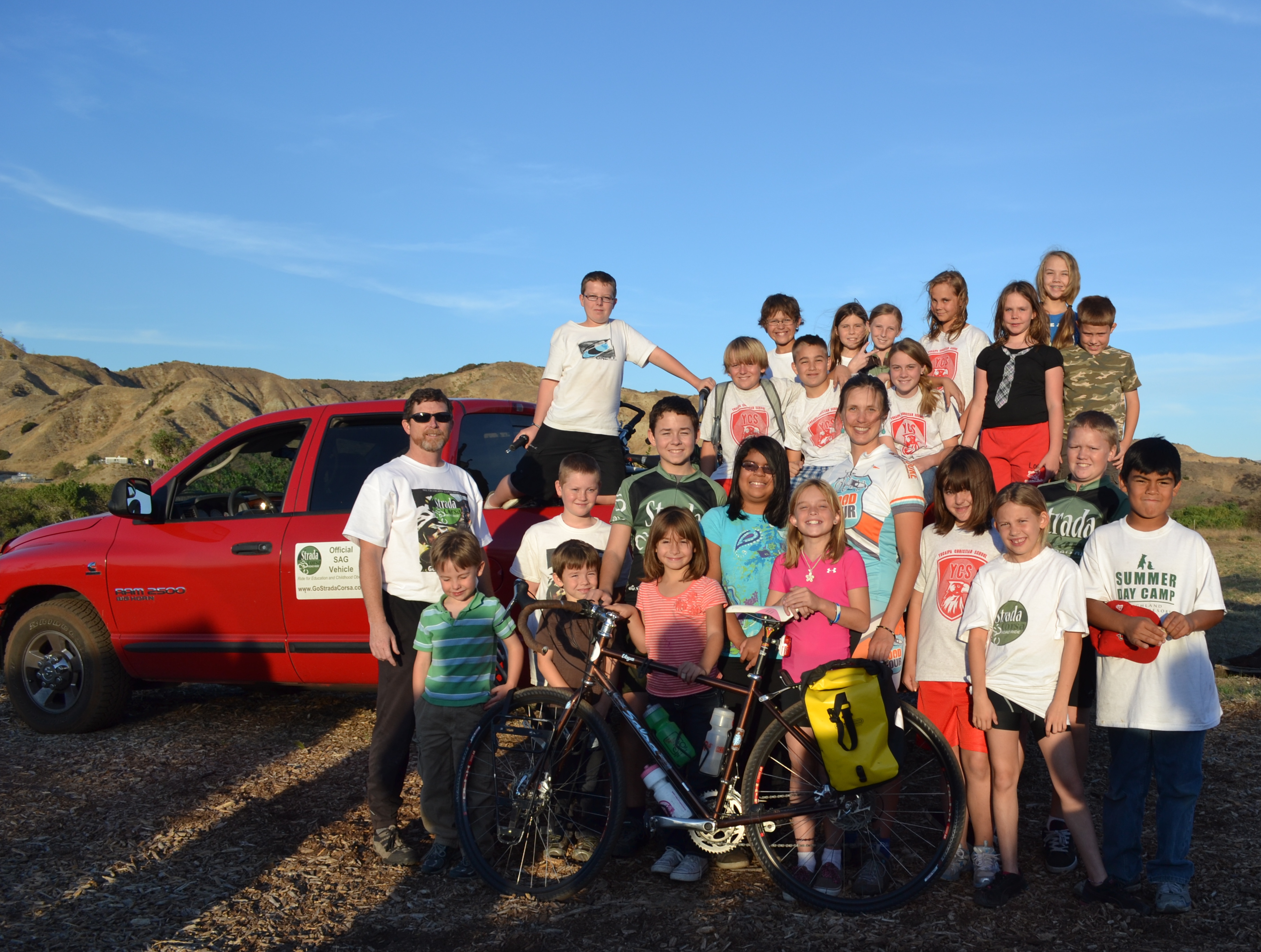 Months ago, I received an email from one very enthusiastic mom asking if I could fit in an SFT stop at her children’s school in Yucaipa, CA. After a bit of schedule shuffling I confirmed my arrival with the principal and we began planning. I was immediately impressed with Yucaipa Christian School (K-6) due to their dedication to cycling. Get this – each year the school’s bicycle club takes a tour from Yucaipa to Phoenix! That’s 350 miles; a long ways for elementary school kids.