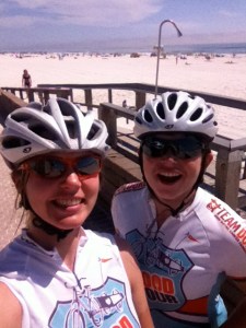I met Sara in Mississippi, and upon arrival at the coast I was greeted by torrential rain… “Oh no what have I signed up for? Is Sara crazy? Am I crazy? This idea is crazy! Has Sara washed away?” ran through my head as I imagined sitting stationary at the beach and watching it rain all week. But Sara reported that the sun was shining where she was, so I parked the car and took off on my bike to ride through the puddles in pursuit of the patch of blue sky and found her happily pedaling in my direction.