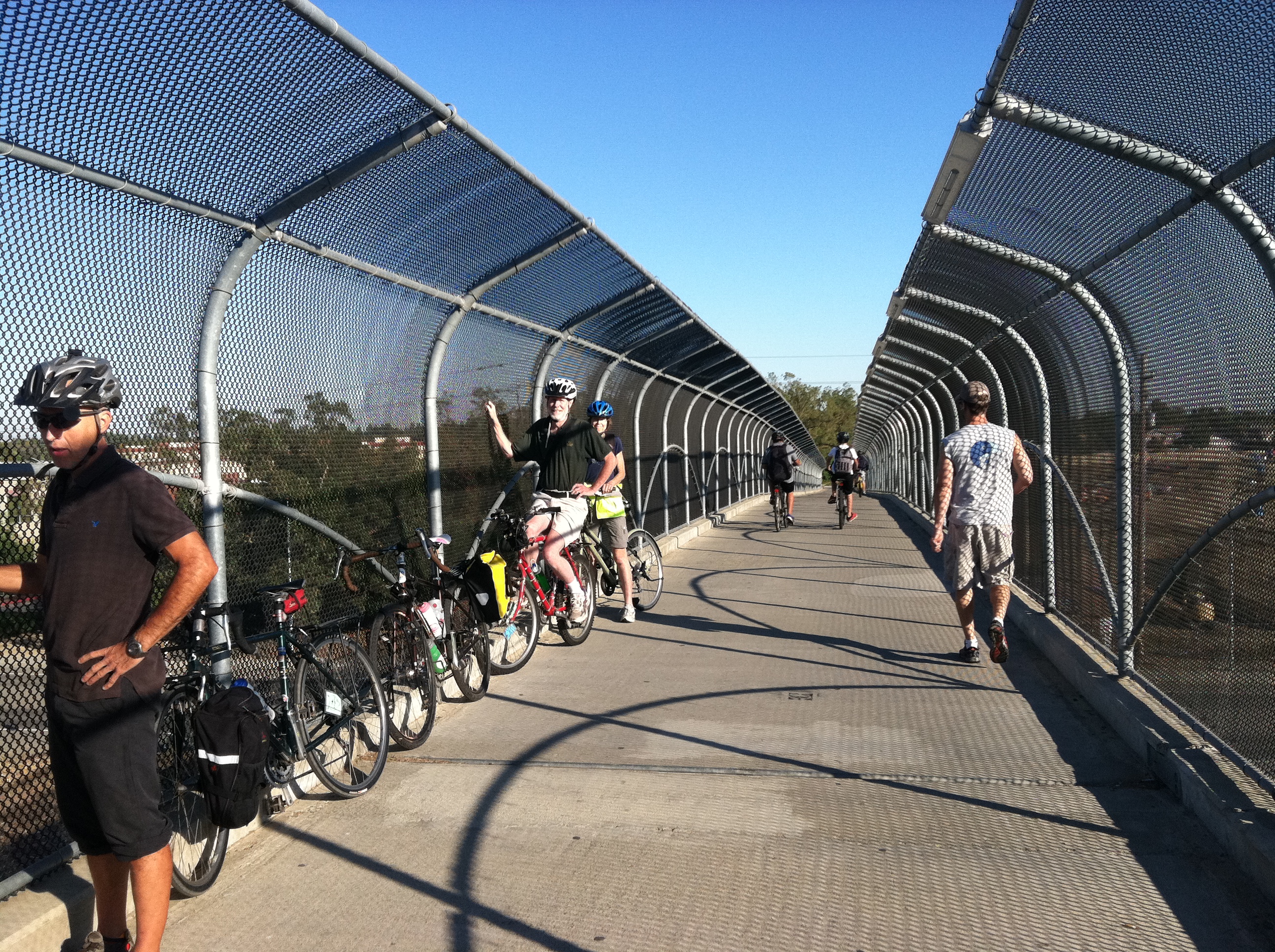 After an early morning meeting in one of the many city parks, we pedaled off to examine some of the arterial cycling routes that students use to get to school. Our group cruised along shaded bike paths, across intersections, under tunnels, over bridges and through quiet streets that may someday be designated as ‘Bike Boulevards”. The network of paths was very impressive and even the most distant neighborhoods had access to safe routes.