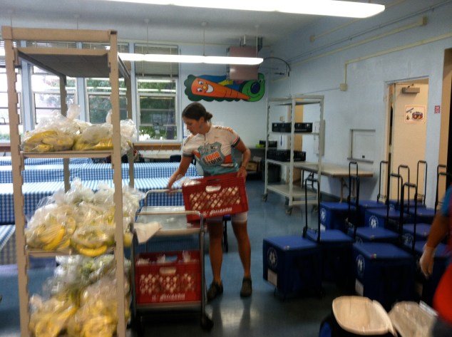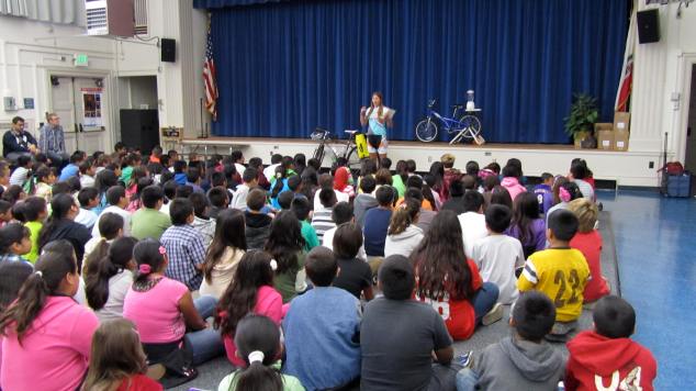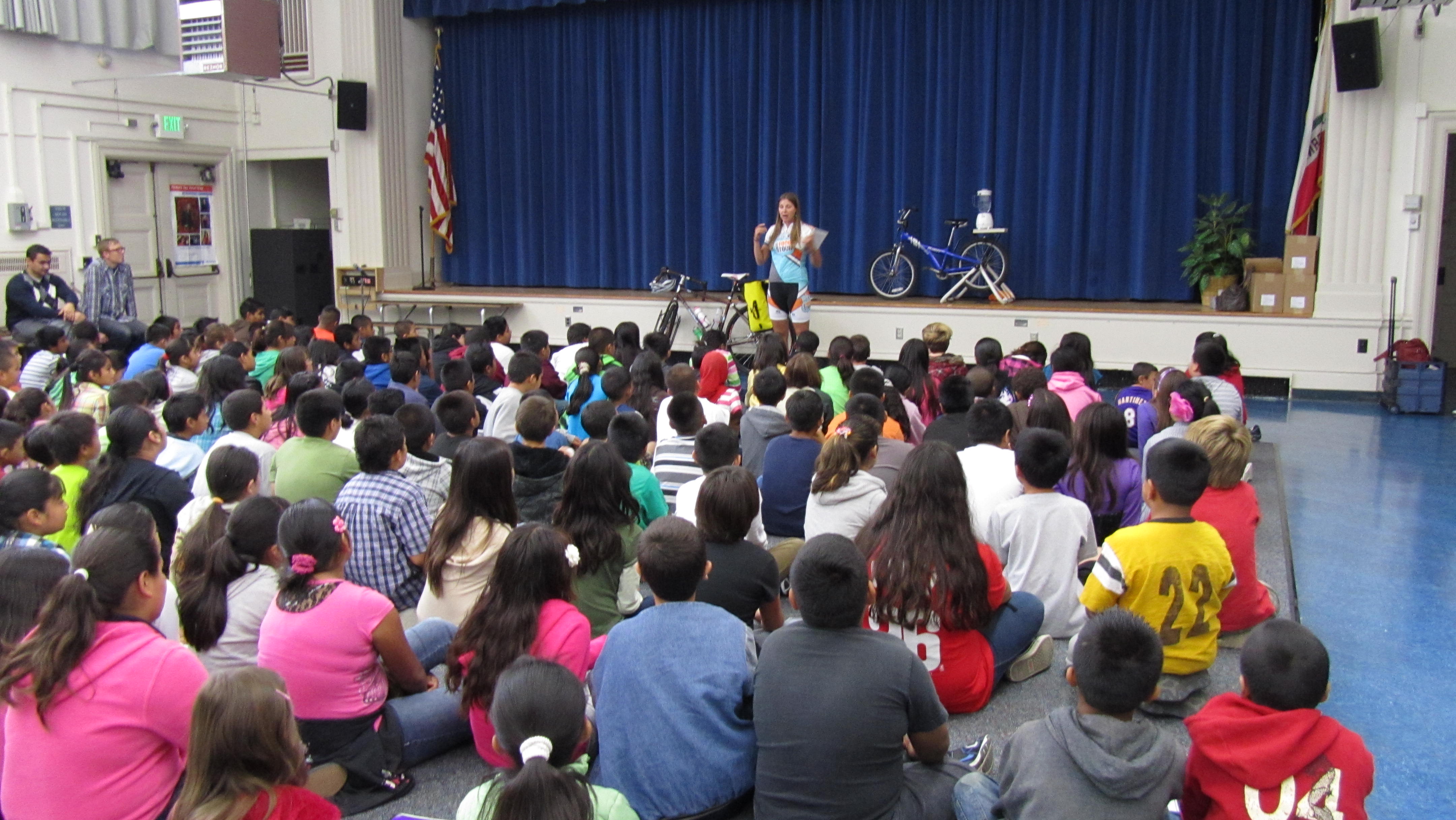 I started the day by assisting with Linda Vista Elementary’s Breakfast in the Classroom program. After packing rolling coolers full of bananas and milk, I headed with a group of student “breakfast deputies” to their classroom for a quick glimpse into this school-wide feeding program. A quick meal of an egg & cheese flauta, a banana & milk and we were off to the auditorium for a School Food Tour presentation. The kiddos were a great audience and were extremely enthusiastic to ask questions and participate at every opportunity. We could have done Q&A for hours!