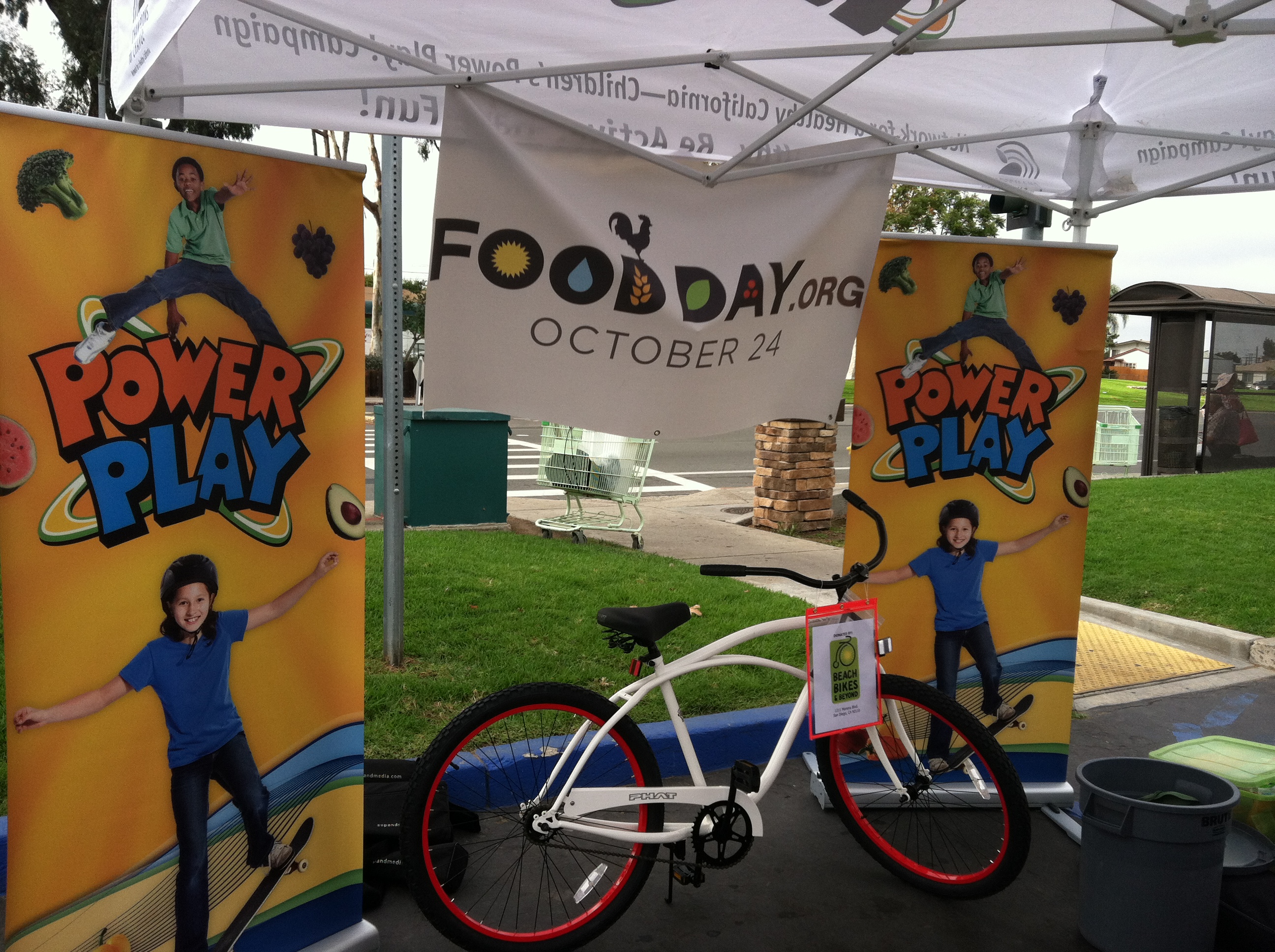 A booth at the Linda Vista farmer’s market was the next agenda item for the day. We again had the smoothie bike set up so shoppers could pedal their way to a healthy, fresh snack. The folks from Network for Healthy California secured two bikes to give away – raffle tickets for which could only be procured through a conversation about healthy food and the School Food Tour. As two extremely happy attendees wheeled their shiny new bikes through the stalls of fruit and veggies we packed up our display and were off to the final event of the day.